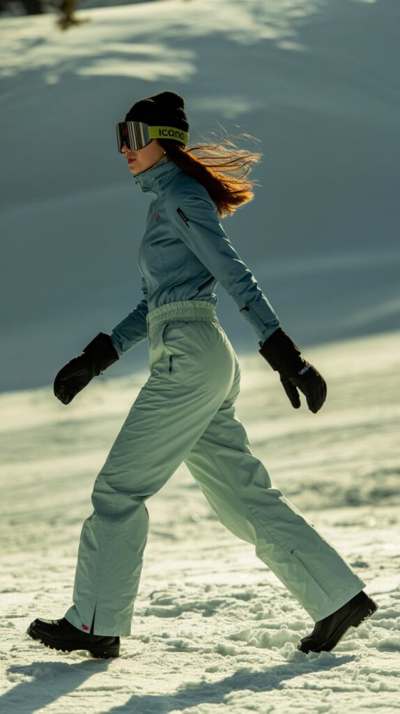 - If you’ll be on snow, swap leggings for waterproof softshells to stay dry and polished.