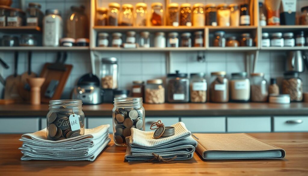 Also, think about how you shop for groceries. Meal planning can cut food costs by up to 20%. Using less detergent and reusing containers also saves money. These tips help you spend more on important things like your home and bills.